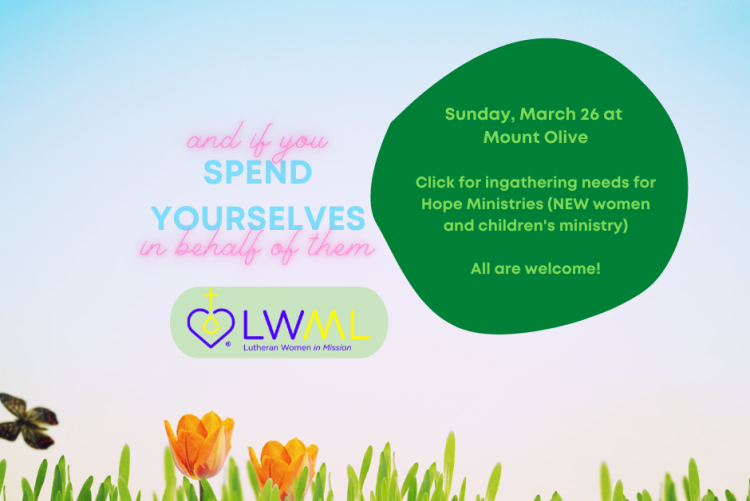 The Des Moines West Zone Lutheran Women in Mission Spring Rally was held at Mount Olive on March 26th. 41 attended, representing the 8 churches in the DM West Zone LWML.